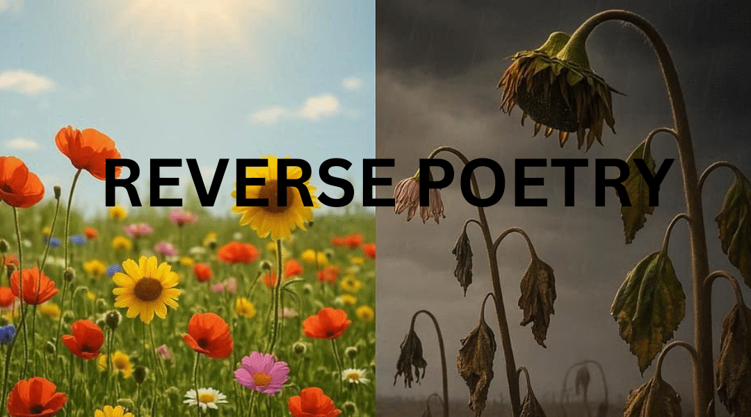 Reverse poetry is a form of poetry where a poem can be read both from top to bottom and from bottom to top offering different and opposite perspectives of the theme chosen.